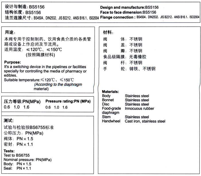 2、若已經(jīng)由設(shè)計(jì)單位選定我公司的衛(wèi)生級(jí)隔膜閥產(chǎn)品型號(hào),請(qǐng)按型號(hào)直接向我司訂購(gòu);